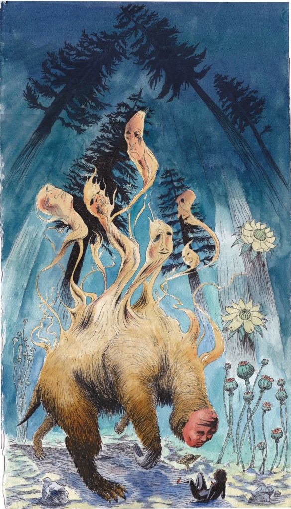 Ink and watercolor on paper