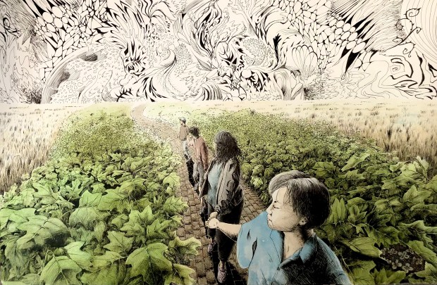 Ink and colored pencil on paper