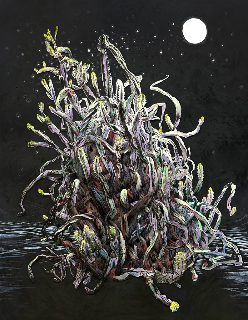 Ink, colored pencil, gouache, and oil pastel on paper