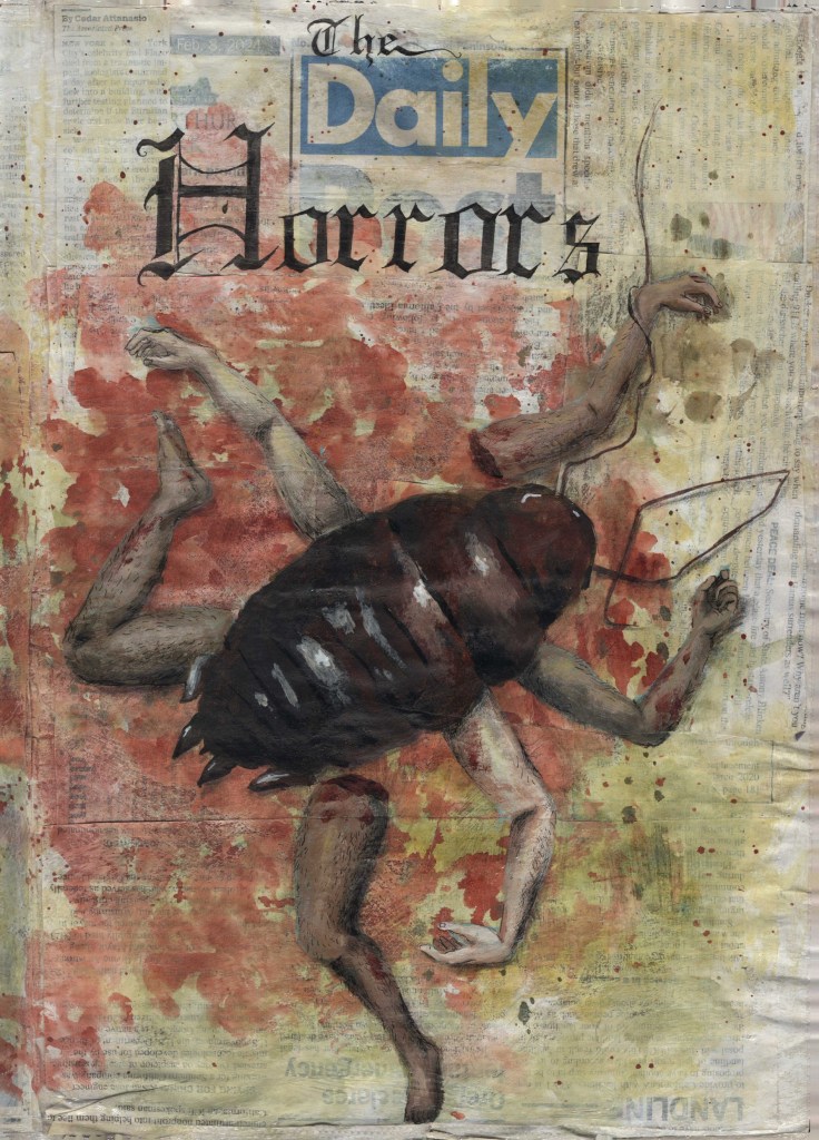 Ink and acrylic on newspaper